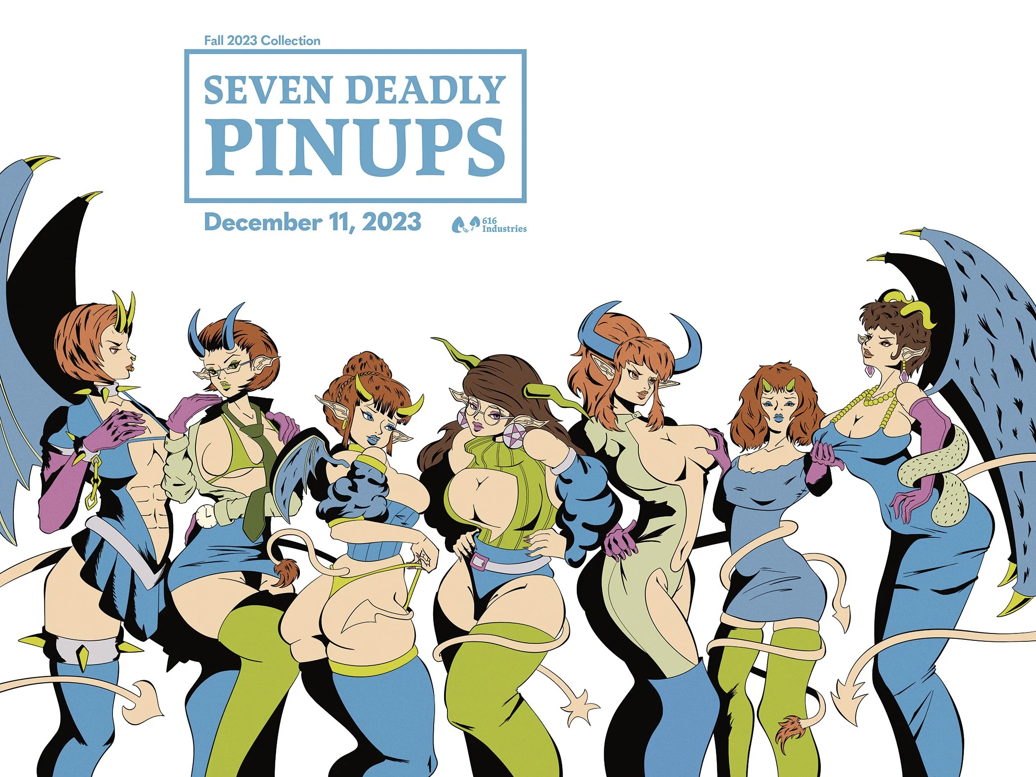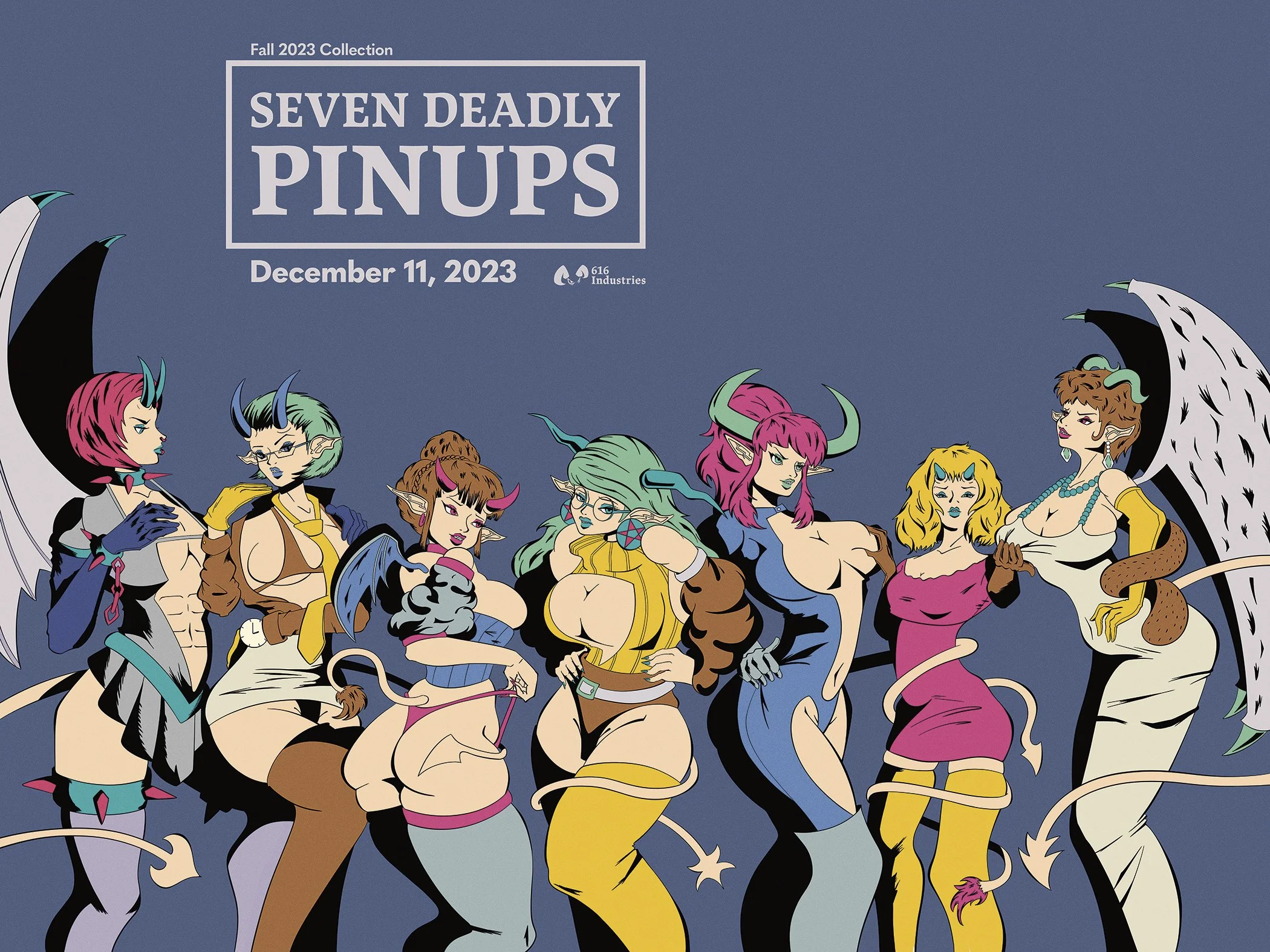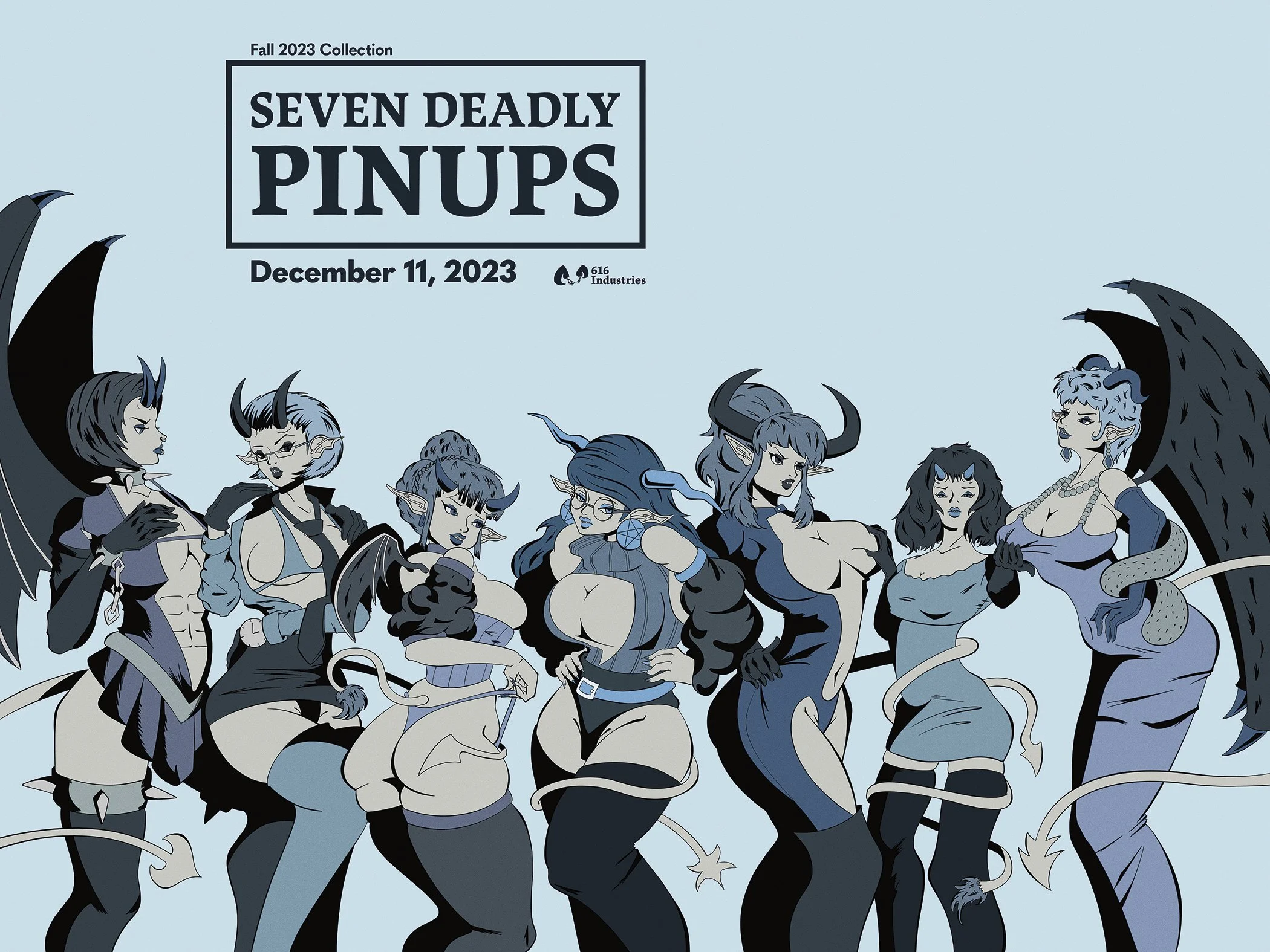 Color Redesigns Seven Deadly Pinups promotional poster recolored using a monochromatic and two tetradic color treatments.