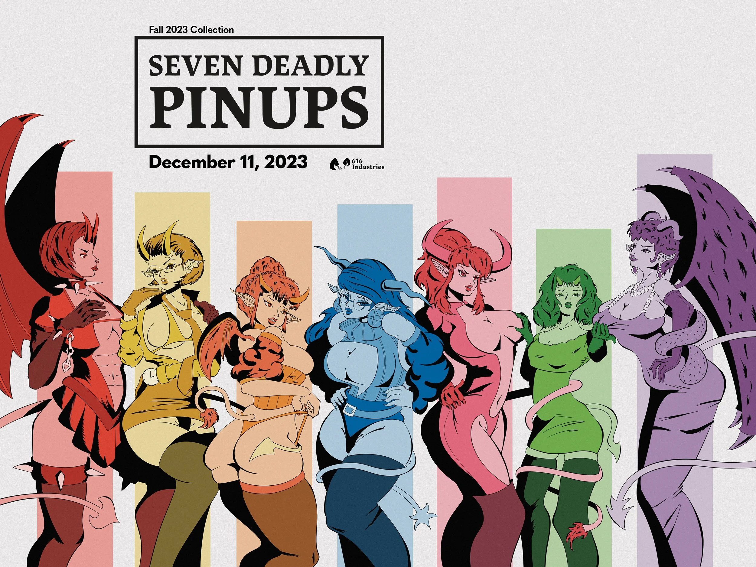Seven Deadly Pinups Clothing Line A collection of hoodies, totes, and stickers based on the Seven Deadly Sins and demon mythology.